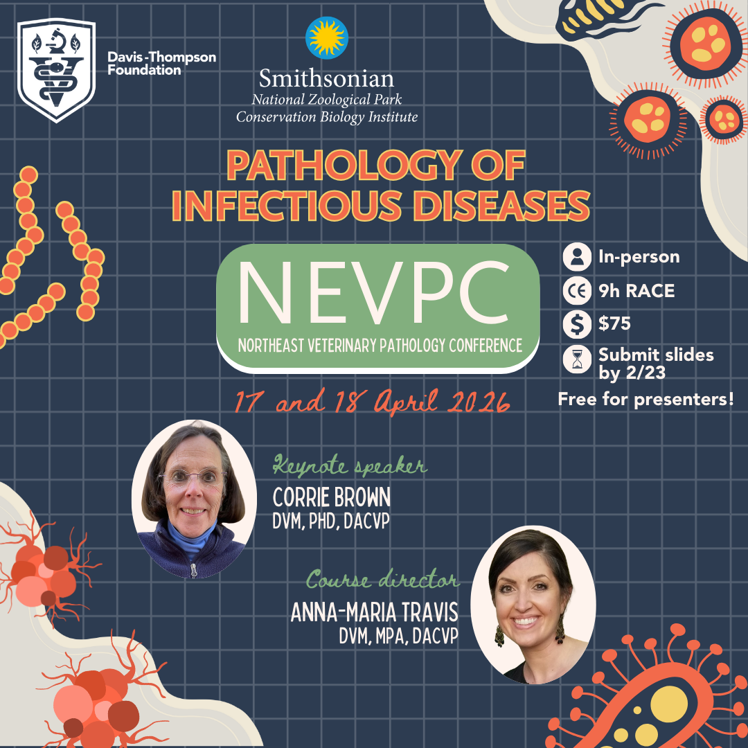 *📢 Get Ready, All You Cool Kids! NEVPC is BACK! 🔬* That's right, it's the moment you've all been waiting for! Back by popular demand, the *Northeast Veterinary Pathology Conference (NEVPC)* is making its triumphant return for 2026, and this year, we’re hanging out with special guest speaker, *Dr. Corrie Brown, DVM, PhD, DACVP*! 🦠 Mark your calendars for *April 17-18, 2026*, because we're taking it back to the *Smithsonian National Zoological & Conservation Biology Institute* in our nation’s beautiful capital, *Washington, DC*! 🌸 Do you have a fascinating *infectious disease* case you're dying to share? This is your time to shine! ✨ We're officially *calling for presenters*. (And psst... presenters attend for FREE!) And it wouldn't be an NEVPC event without a little fun (well, even more than we already do at this conference… if you know, you know)! Get ready to mingle and connect at our *Friday night social mixer* in neighboring Adams Morgan (the coolest place for DC nightlife). 🍻 We’re also bringing back *behind-the-scenes animal encounters*! 🐘🐊🦩 Don't miss out on this incredible opportunity to learn, network, geek out with the best in the biz, earn *RACE credit*, and see some pandas while you’re at it! Ready to join the excitement? Smash that registration link below before it's too late! 👇 *Register Here*: <https://www.google.com/url?q=https%3A%2F%2Fdavisthompsonfoundation.org%2Feve...> https://davisthompsonfoundation.org/event/2026-northeast-veterinary-patholog... To *present*, reach out to: Dr. Anna-Maria Travis, DVM, MPA, DACVP at ANNAMARIA.DACVP@GMAIL.COM . Deadline to apply to present and submit materials is February 23. Forward to a colleague who *absolutely CANNOT miss this! *😍 #NEVPC2026 #VetPath #Conference #BackByPopularDemand #CoolKids #FluffyPandas #PathNerdsUnite [image: nevpc.png] -- Bruce Williams Chief Financial Officer Davis-Thompson Foundation 301 467-4024 bruce.williams@davisthompsonfoundation.org www.davisthompsonfoundation.org